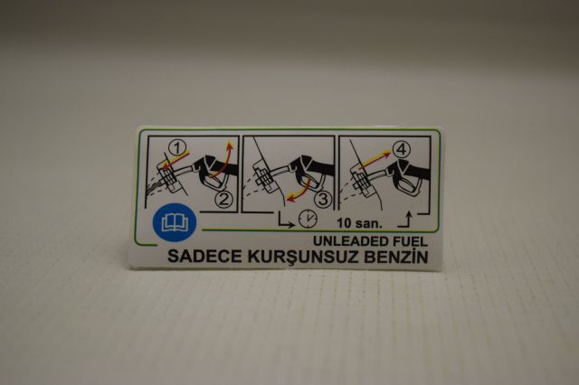 Doblo Depo Kapağı Benzinli Araç Yakıt Uyarı İkaz Etiketi Yan Sanayi Ürün SADECE KURŞUNSUZ BENZİN UYARI ETİKETİ !!!